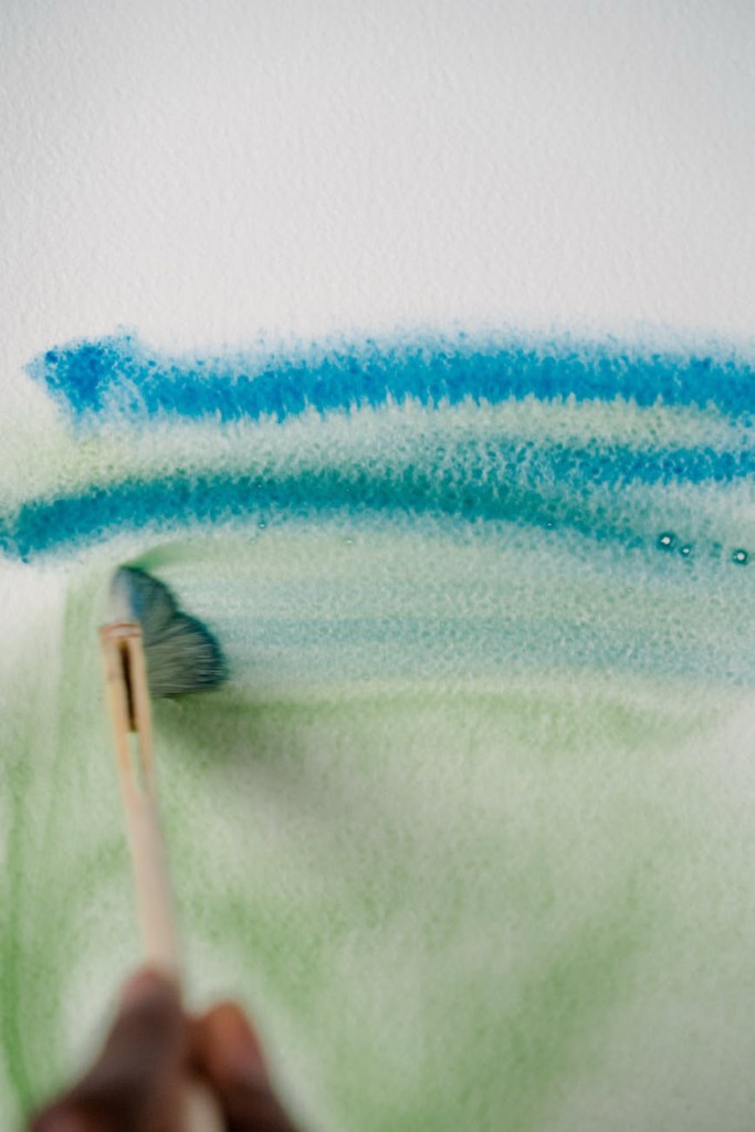 I dipped my wet brush in Prussian blue and let it flow across the page, brushing back and forth down the wet paper canvas.